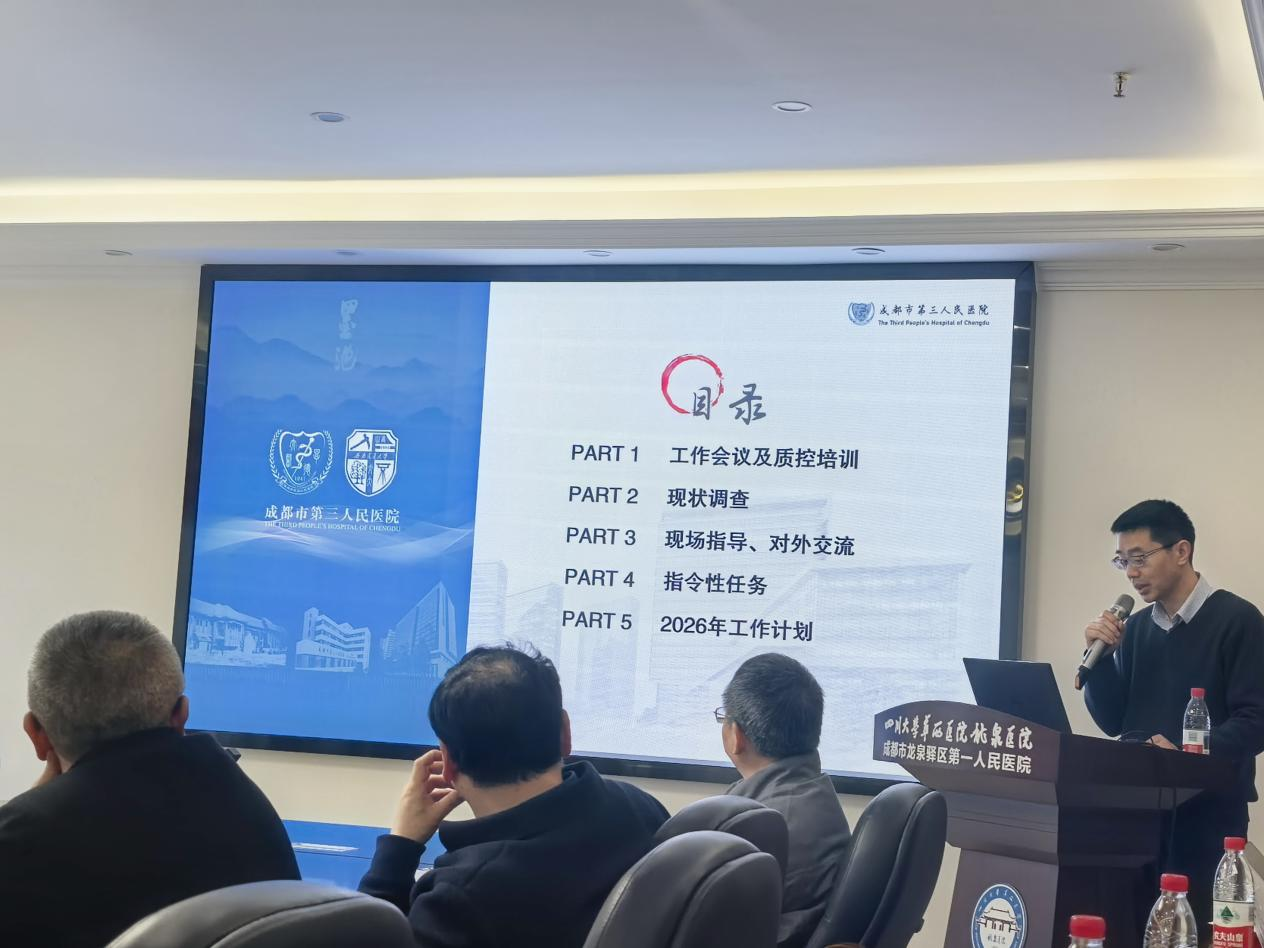 成都市消化内科质量控制中心2026年第一次工作会议暨2025年度工作总结会于2026年1月16日在龙泉驿区四川大学华西医院龙泉医院顺利召开。会议由成都市消化内科质量控制中心秘书周希主持,成都市各区县消化内科质控分专家、分中心主及秘书参会。此次会议旨在总结消化内科质控中心2025年度开展的相关质控工作,并对2026年质控工作提出计划安排。